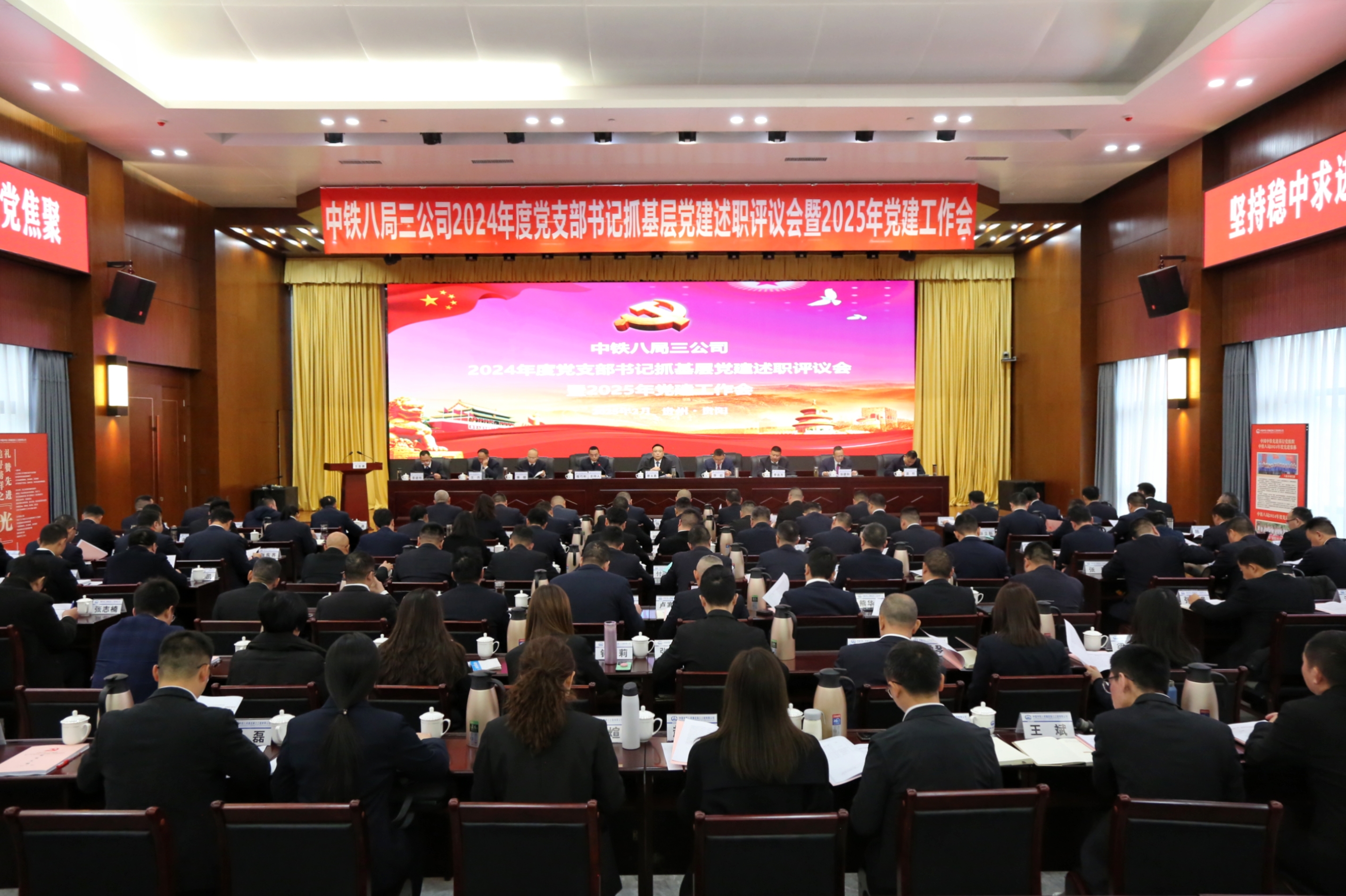 2月10日,公司党委在本部1002会议室召开了2024年度党支部书记抓基层党建述职评议会暨2025年党建工作会。公司党委书记、董事长曹火勇现场点评并讲话,党委副书记、纪委书记、工会主席程巧利主持会议。公司领导班子成员,本部党群各部门负责人,所属各单位党支部书记、项目经理、基层党员和群众代表,共计108人参加。