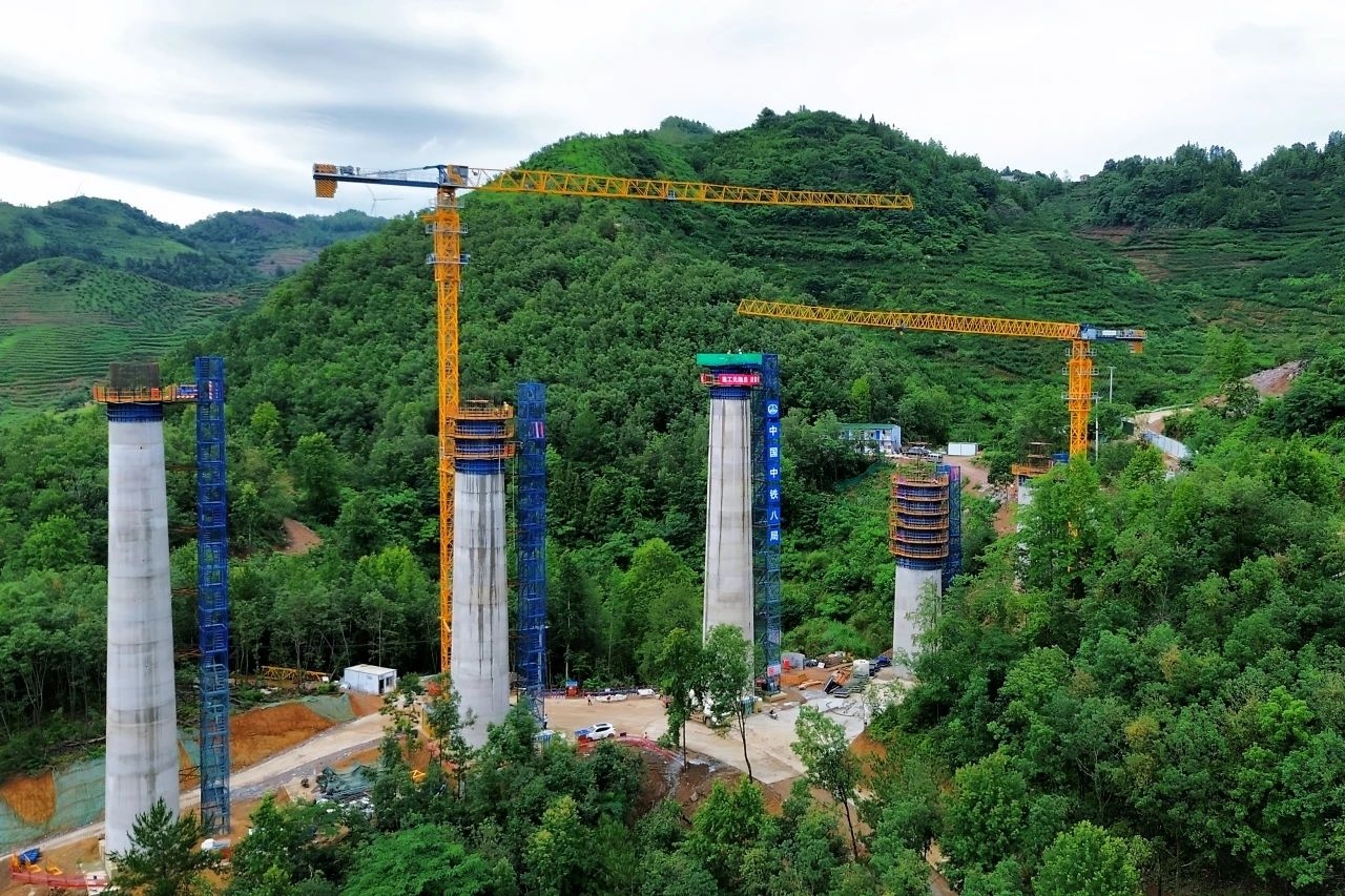 此次浇筑完成的25号墩为空心桥墩,高43.5米,其右侧还设置了2.3米高声屏障基座。“作为全桥率先施工的墩身,首墩是桥梁下部结构的‘试金石’,更是后续标准化施工的标杆。”参建项目部工点负责人郑勇表示,项目技术团队通过实施10余项精细化管控措施,成功实现了质量、安全、进度的全面受控,为后续高墩施工积累了可复制的技术经验。