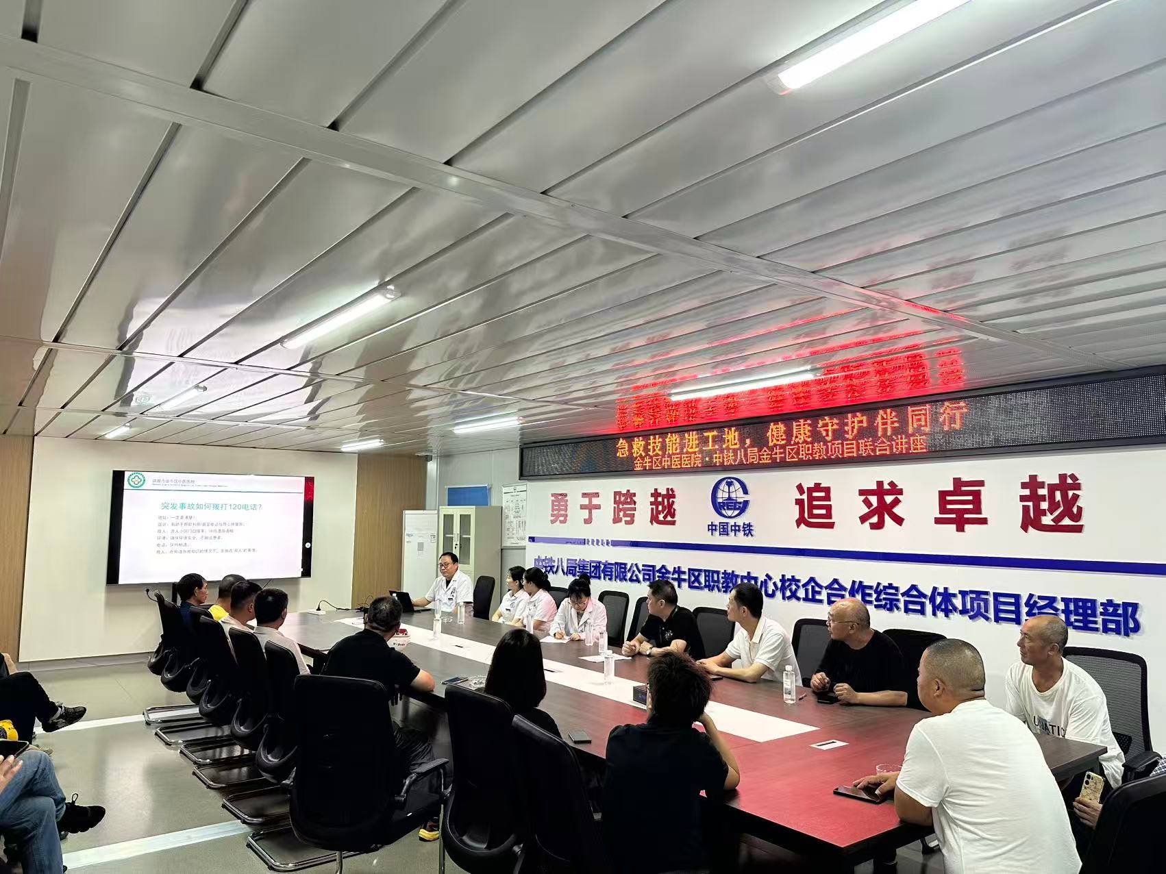 9月11日,集团公司金牛职教中心项目部特邀成都市金牛区中医院专业医护团队,在项目驻地开展急救健康知识专题讲座。