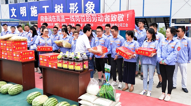烈日炎炎,酷暑难耐,连日来气温节节攀升,也给奋战在施工一线的工人带来了严峻的考验。7月9日,公司工会在第三项目部、供电一项目部开展“送安全、送清凉、送健康、促和谐”慰问活动,公司党委副书记、纪委书记张铭到现场对顶烈日、战高温、斗酷暑的基层一线员工带来了组织的关怀和慰问。