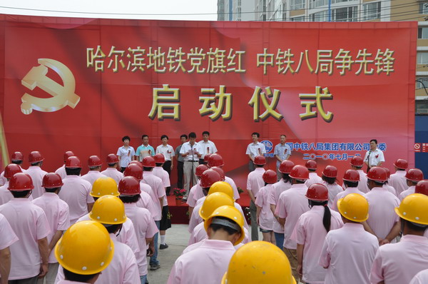 7月1日上午9:00分,承担哈尔滨市地铁一期四标工程项目的昆建公司在电表厂站工地现场举行“哈尔滨地铁党旗红,中铁八局争先锋” 党建主题实践活动启动仪式,隆重庆祝中国共产党建党89周年。哈尔滨地铁公司领导对此次活动给予了高度评价。黑龙江电视台、哈尔滨电视台等省市新闻媒体也对活动进行了报道。