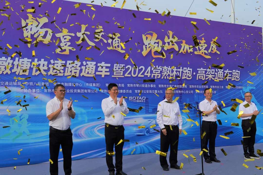 近日,由中铁八局承建的342省道常熟东段改扩建工程快速路(青墩塘快速路)正式通车。常熟市委书记周勤第,市长秦猛,副市长史纲,市交通局局长陈义,中铁八局总经理钟俊等相关领导出席开通仪式暨2024常熟村跑·高架通车跑活动。