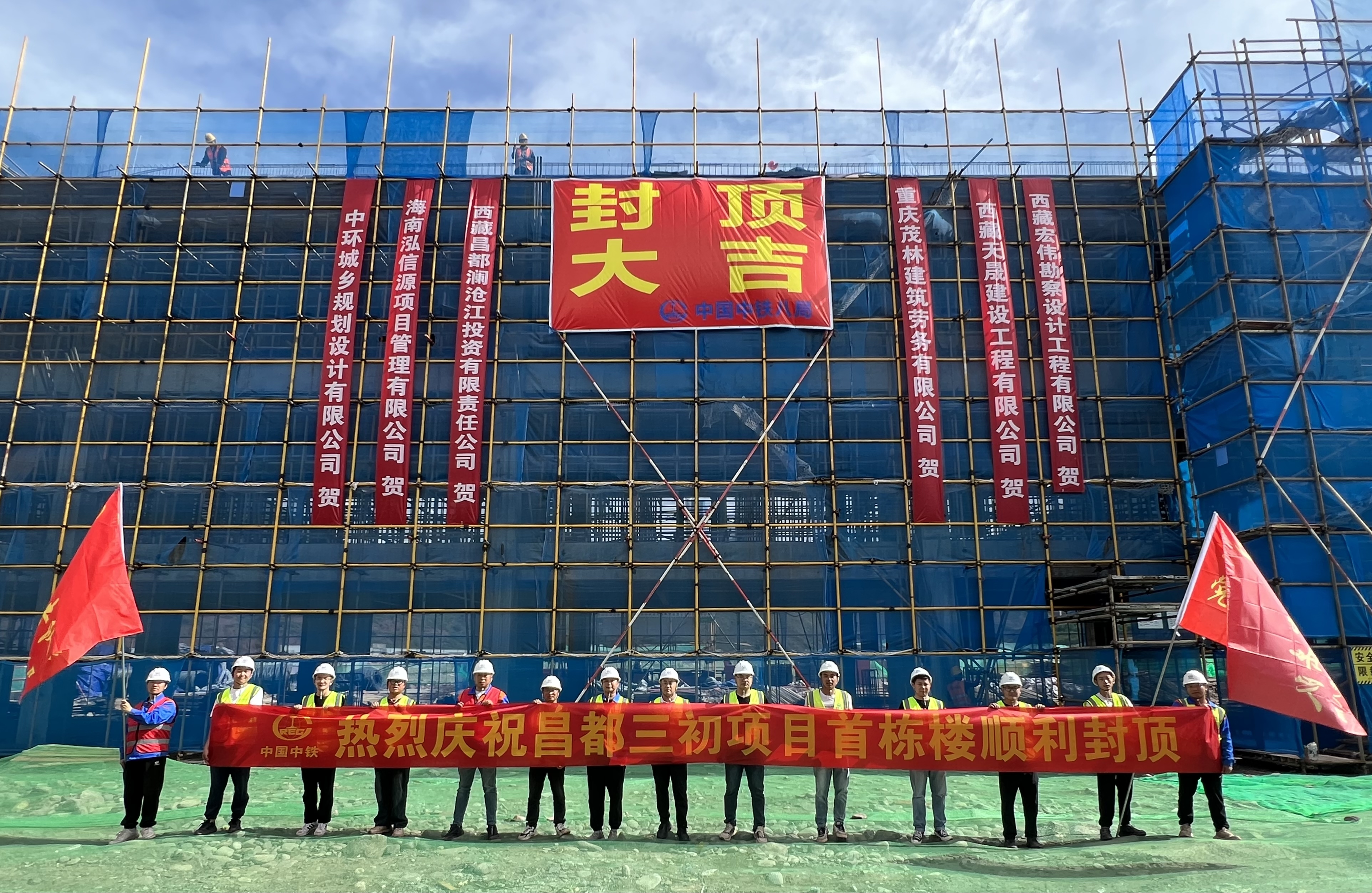 昌都第三初级中学项目位于昌都市卡若区,一期工程由1栋教师住宅楼、4栋学生宿舍以及1栋教学综合楼组成,总建筑面积约23595平方米。本次封顶的B单元教学楼建筑层数为3层,高度约14米;4号学生宿舍楼建筑层数4层,建筑高度约16米。