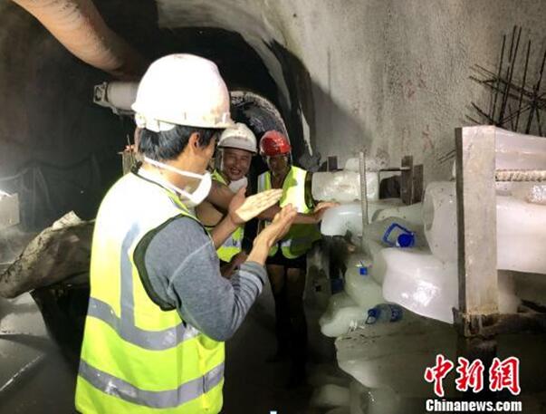 在冰块后方,水流哗哗之声格外清晰,排水沟里的水流又快又急,有如夏日雨后的小溪流,头顶上不时还掉落下小水滴。杨映辉说,“秀岭隧道还发生过4次大型坍方,3次大的突泥涌水……”